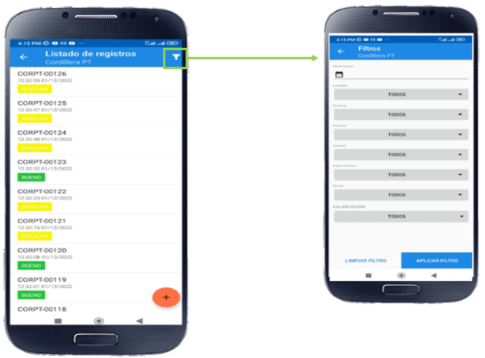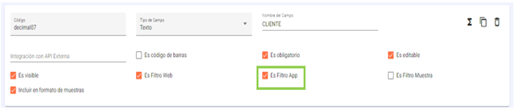 Las piezas que aparecerán dentro del filtro serán aquellas que se encuentren marcadas dentro de la plantilla como Filtro App