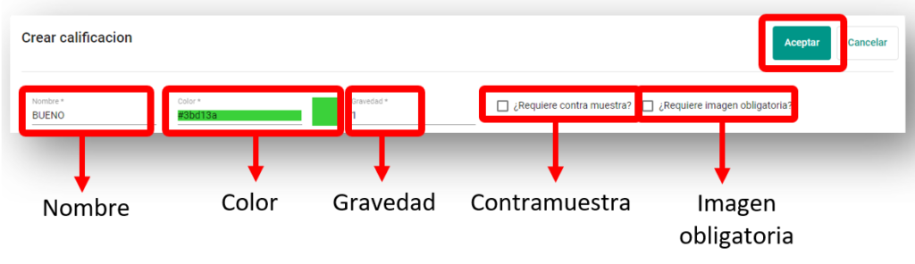 Contramuestra: Marcar opción si se desea que la calificación exija un registro adicional de contramuestra