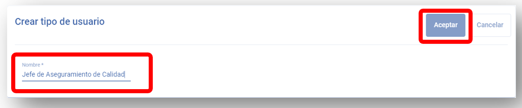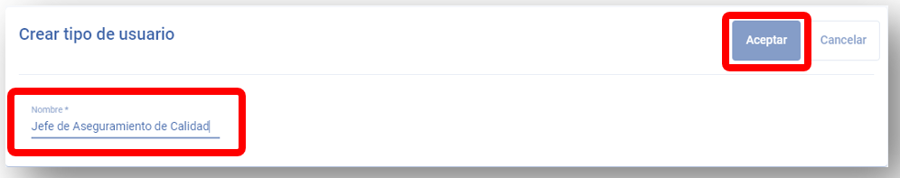 Ingresar el nuevo tipo de usuario y dar clic en “Aceptar”