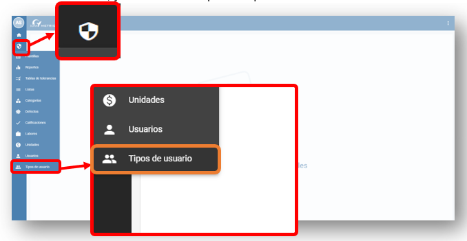 Para visualizar y configurar los tipos de usuario ir a la opción de administrador, y seleccionar la opción “Tipos de usuario”