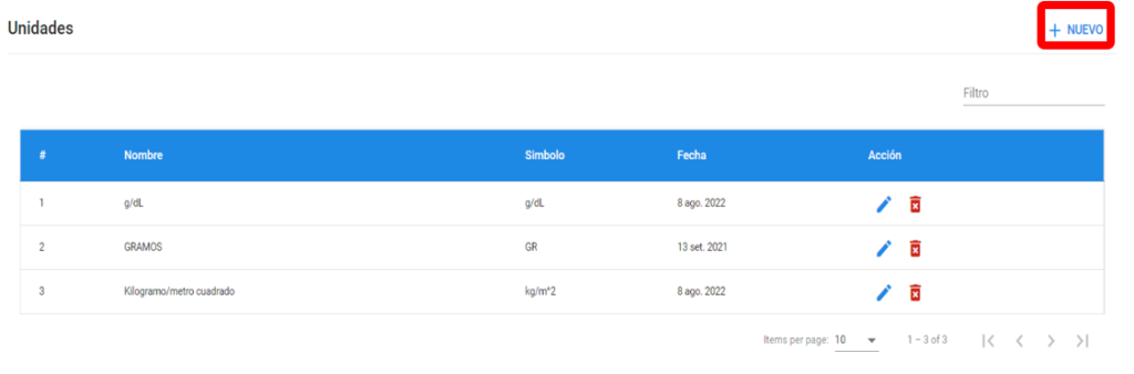 CREAR unidad. Dar clic en la opción “+NUEVO”