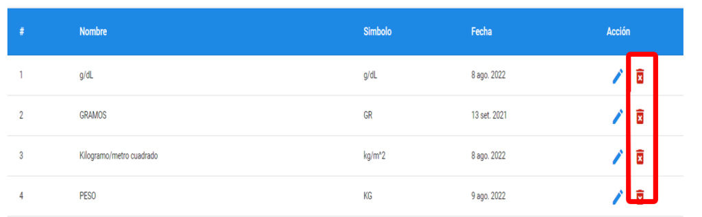 Dar clic en el icono de papelera al costado de la unidad que se desea eliminar.