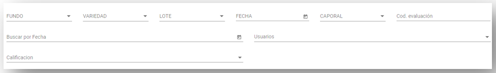 Se puede filtrar las evaluaciones de acuerdo a los parámetros de la parte superior