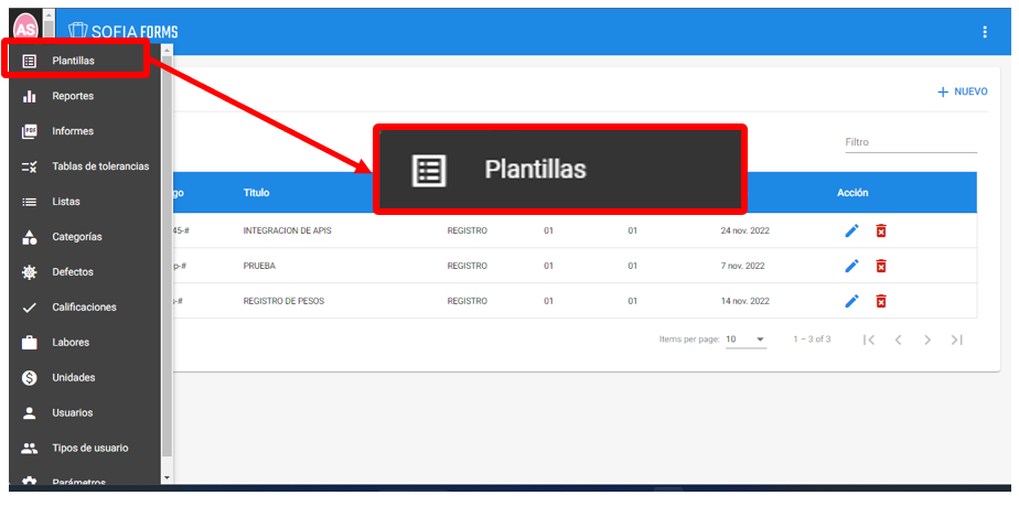 Para visualizar y configurar las plantillas, ir a la opción de administrador y seleccionar la opción “Plantillas”