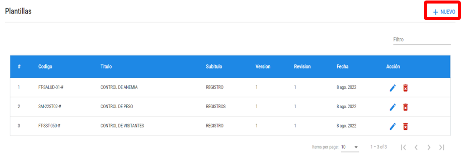 – Versión: Ingresar la versión de la plantilla
