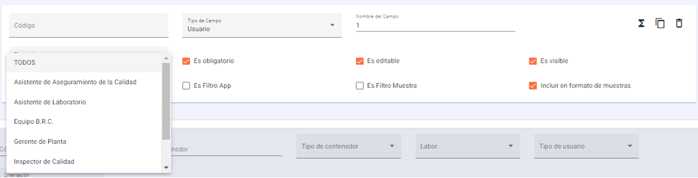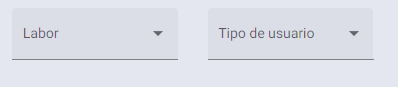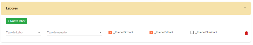 Tipo de usuario: Seleccionar el tipo de usuario que interactuará con la plantilla de acuerdo a las labores ingresadas anteriormente. Si ya se ha elegido una labor es opcional su selección.