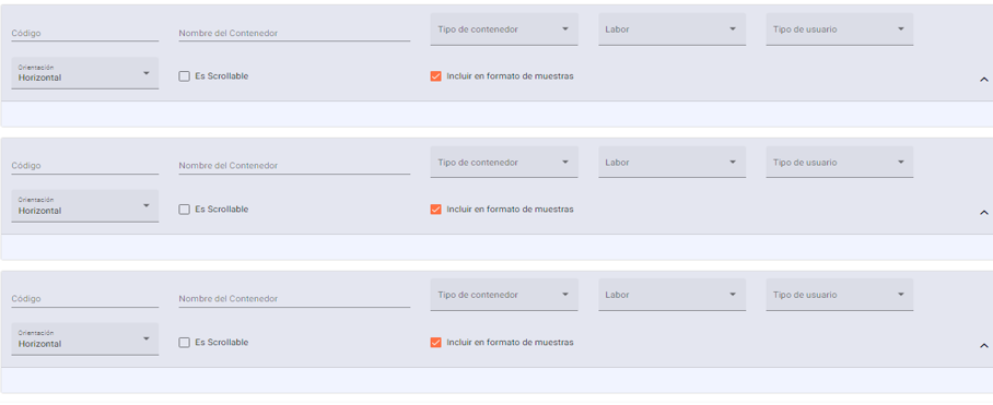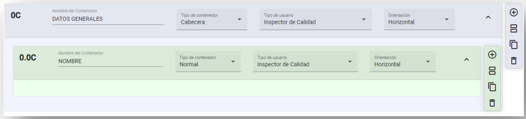 Nuevo Contenedor: Hacer clic para ir agregando contenedores a la plantilla.