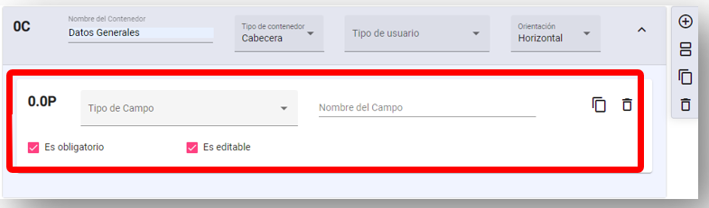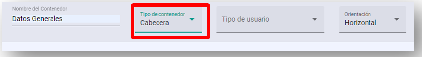 Cabecera: Si se desea hacer una sección tipo cabecera. Se Ingresarán los datos básicos del contenedor y se podrá agregar las piezas que se desee.
