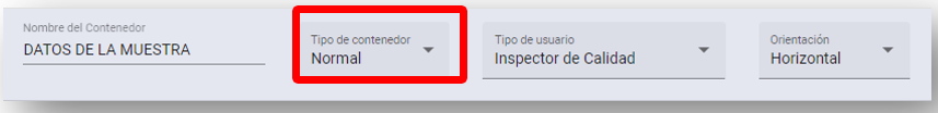 Tras elegir el tipo de contenedor, en el caso de tipo normal, se mostrarán las siguientes opciones en el contenedor: