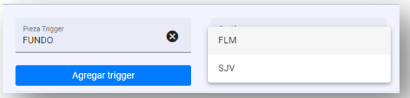 Pieza Trigger: Seleccionar la pieza trigger. Esta pieza será piezas Tipo Lista que se encuentran en la plantilla creada.