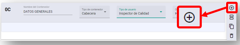 Hacer clic sobre el ícono de agregar sub contenedor