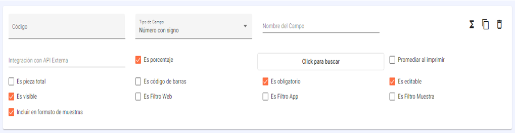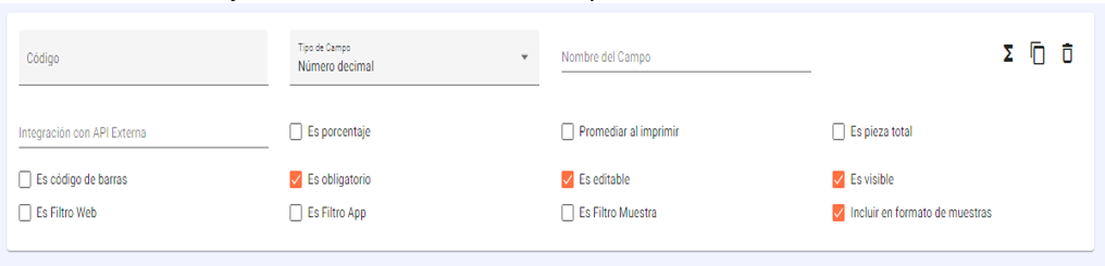 - Es código de barras: Al marcar, al momento de registrar la evaluación aparecerá un icono para leer un código de barras y se coloque como texto.