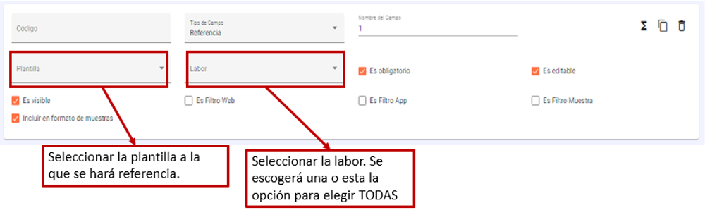 Labor: Seleccionar la labor que interactuará en la plantilla.