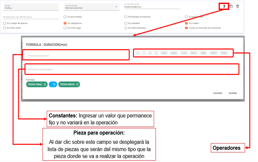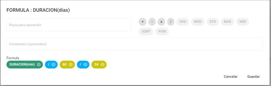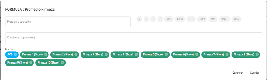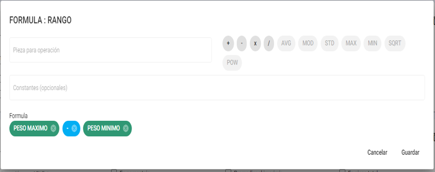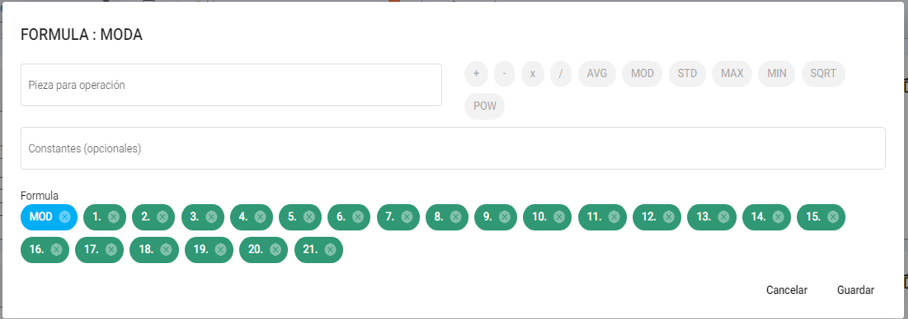 - MOD: Seleccionar para calcular la moda de un determinado número de piezas.