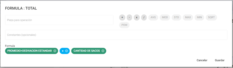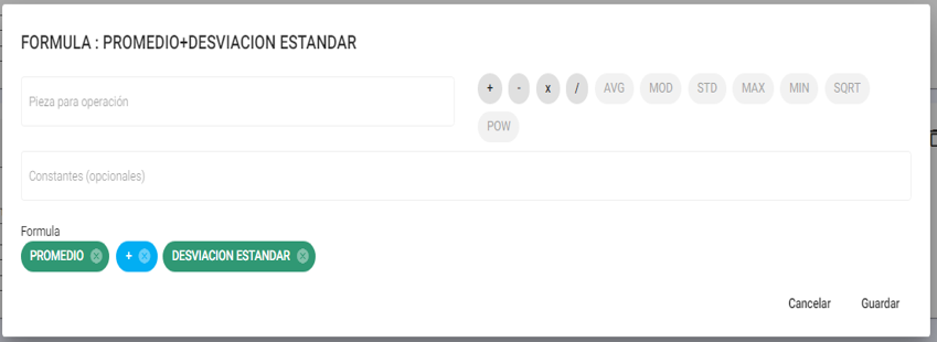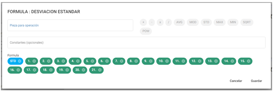- STD: Seleccionar para calcular la desviación estandar de un determinado número de piezas.