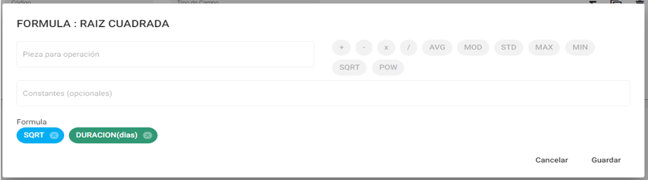 - SQRT: Seleccionar para calcular la raíz de una pieza.
