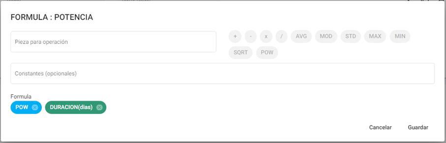 - POW: Seleccionar para calcular la potencia al cuadrado de una pieza.