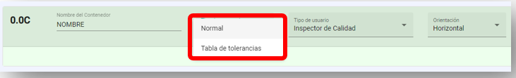 Colocar los datos del contenedor. En el caso del tipo de contenedor, hay dos opciones: normal o tabla de tolerancia