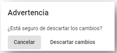 Se descartará todo lo que se ha venido realizando y no se ha guardado. Hacer clic en el botón “Descartar cambios”