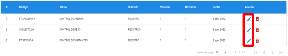 Dar clic en icono de lápiz al costado de la plantilla que se desea modificar. Modificar y hacer clic en “Aceptar”.