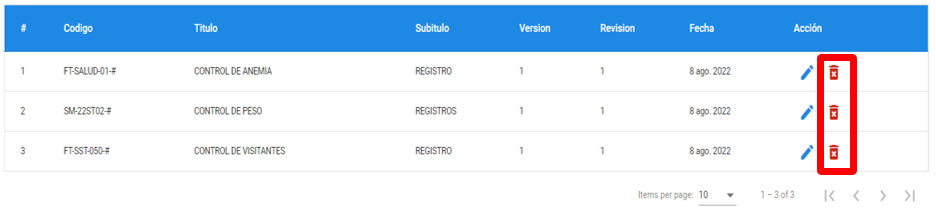 Si desea eliminar una labor, hacer clic en el icono de papelera al costado de la labor deseada.