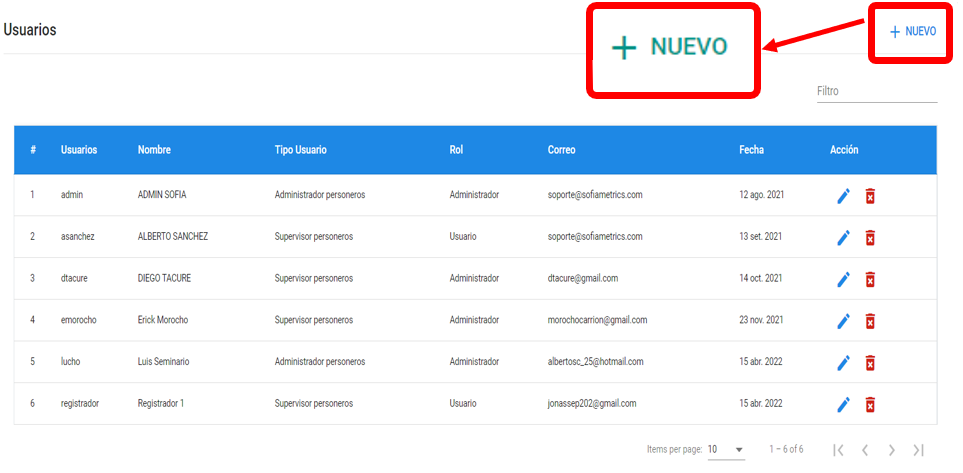 - Rol: Seleccionar el rol del usuario. Hay dos roles: administrador y usuario.