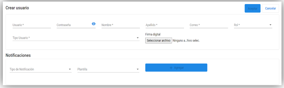 - Tipo usuario: Seleccionar el tipo de usuario